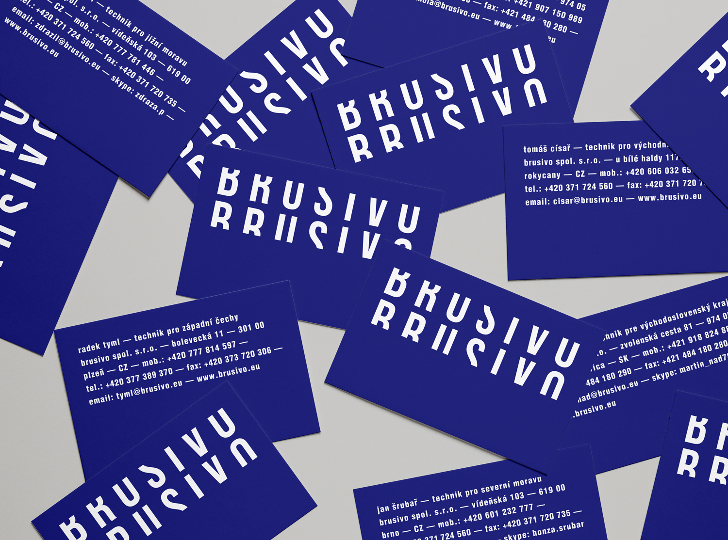 Logotyp a celková vizuální identita využívá princip samotné práce s brusným materiálem, jehož výrobou se firma Brusivo zabývá. Jednotlivé grafické prvky a výrazná typografie jsou tak opracovány/zbroušeny o svou horní a spodní část a odkazují na kvalitní materiál, který zaručuje dosažení precizního výsledku.