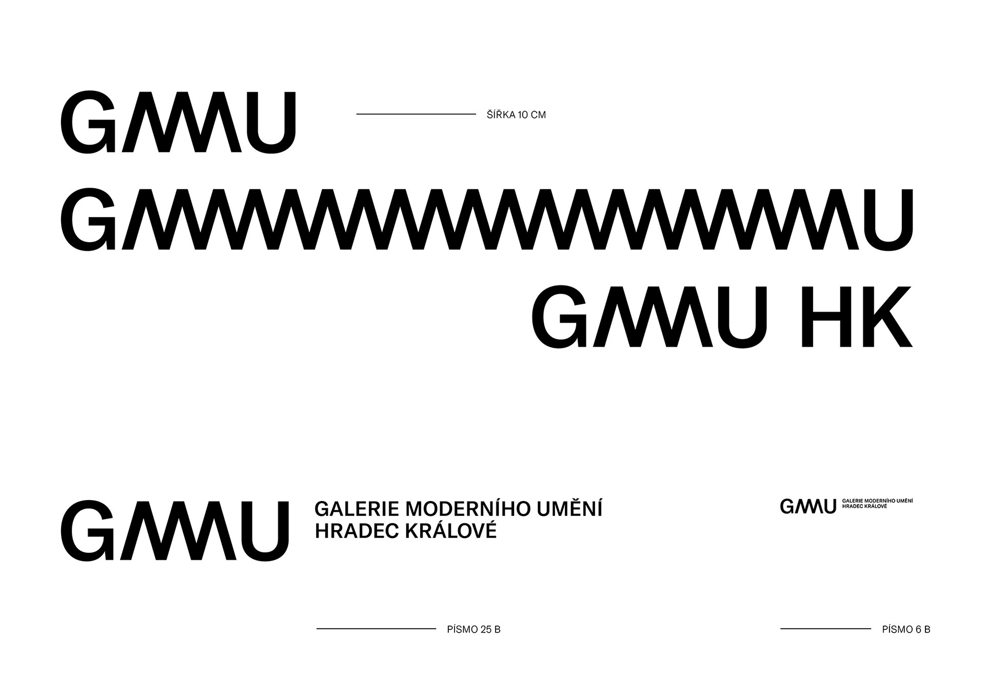 Množením litery „M“ vzniká souvislý pás, který lze donekonečna natahovat, což umožňuje libovolné variování v rámci vizuálního stylu. Základní podoba této litery je znásobena pouze jednou, tak aby byla zachována jasná čitelnost. I přesto si nese základní podoba logotypu GMU jistou dynamiku a vibrace, které v sobě umění a jeho různorodost pojetí snoubí.