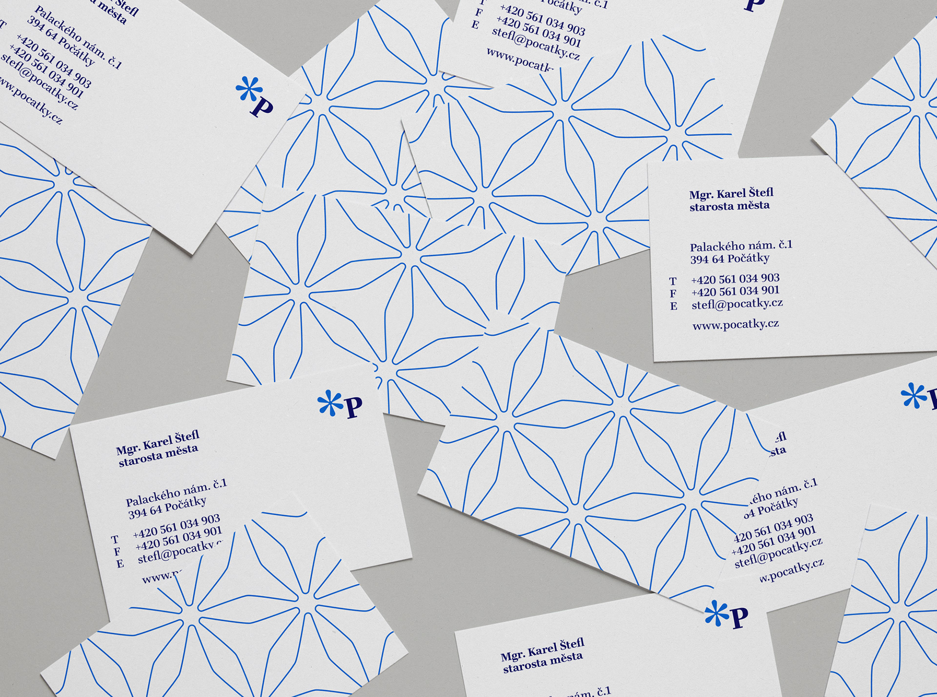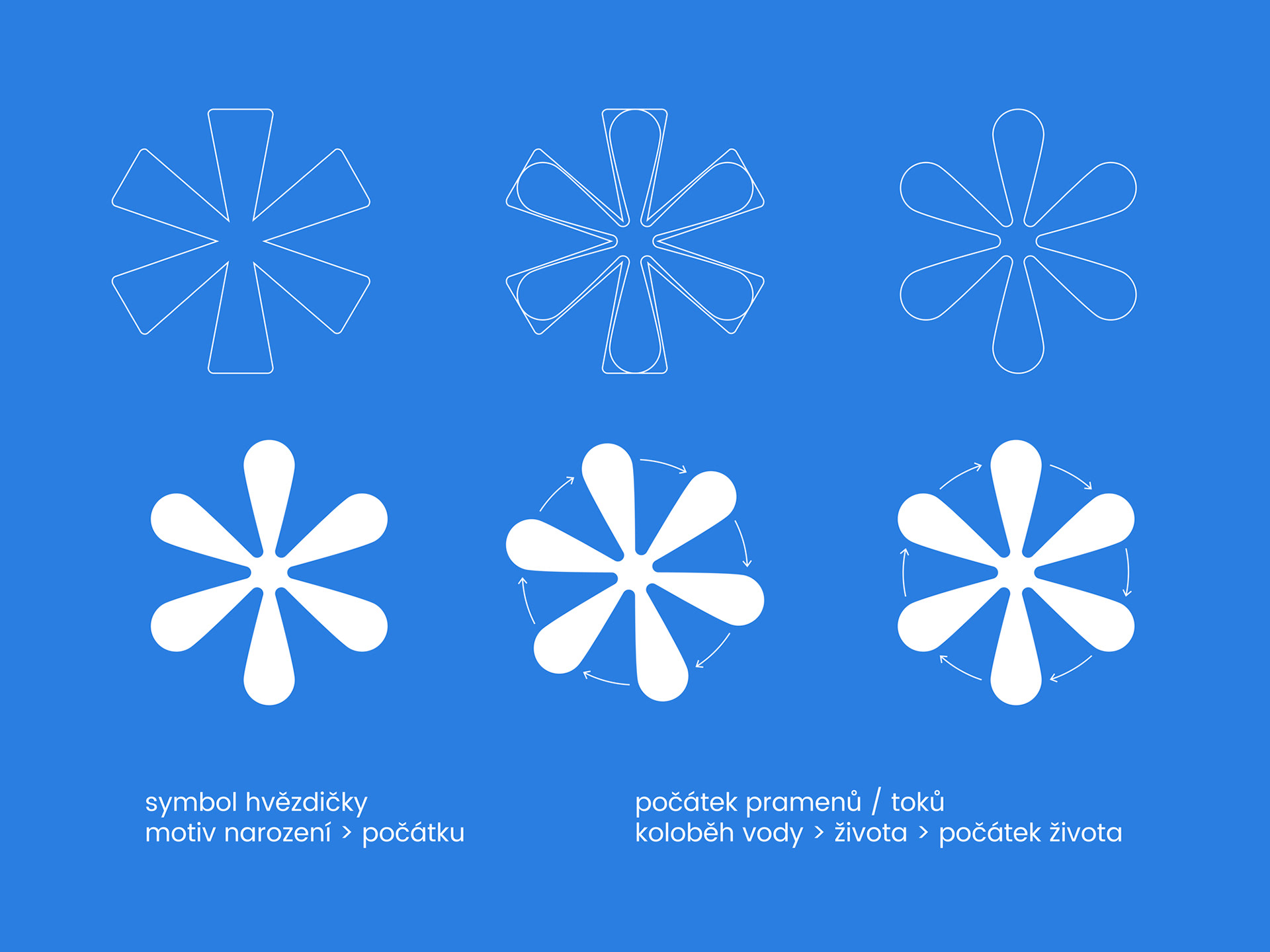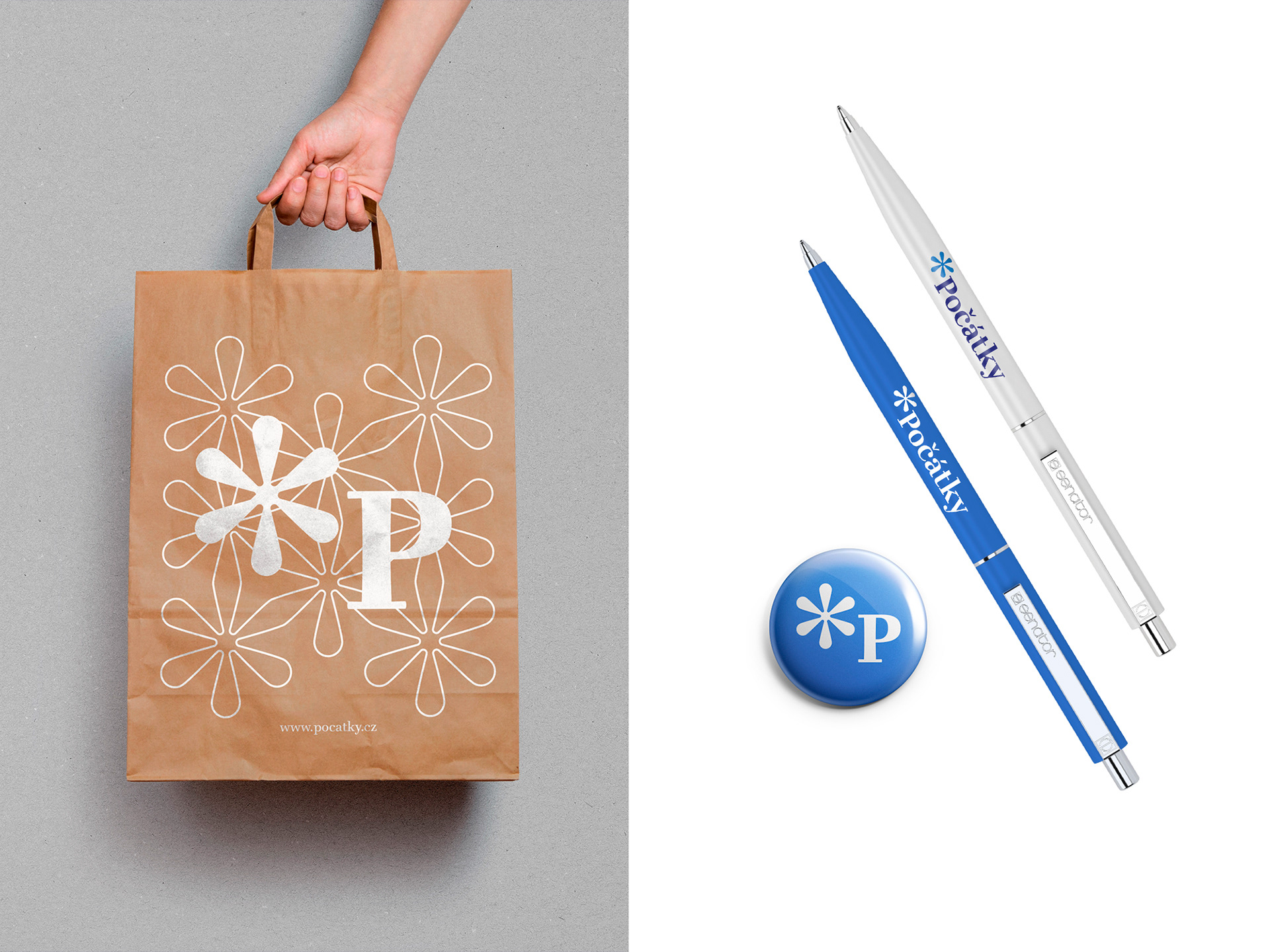 Základním prvkem vizuálního stylu města Počátky je motiv hvězdičky, symbol narození – v tomto případě počátku – počátky pramenů – pramen sv. Kateřiny, pramen Jihlavy, pramen sv. Vojtěcha, pramen sv. Markéty – prameny spojované s léčivými účinky, s čímž se pojí i celková kvalita životního prostředí. Odkaz na všudypřítomnost vodních zdrojů v podobě řady rybníků nebo již zmiňovaných pramenů, které se nacházejí v bezprostřední blízkosti města.