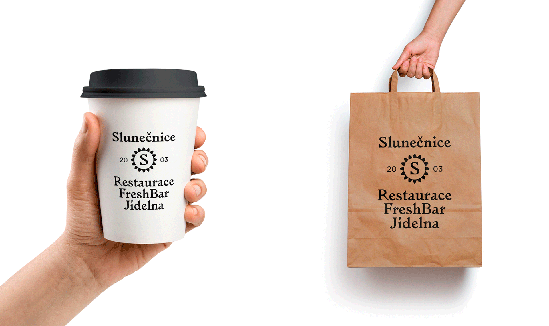 Kontrastní použití žluté a černé, barevnost přímočaře odkazuje na květ slunečnice. Jasně a srozumitelně bez nutnosti neustálého opakování textového označení podniku, který v sobě snoubí hned tři provozy – restauraci, jídelnu a freshbar.
